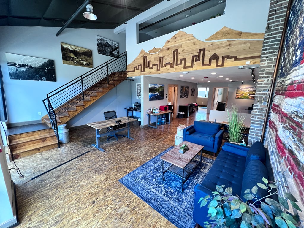 Our shared space features desk workstations, couches, and a conference room table, providing flexible options for your workday.