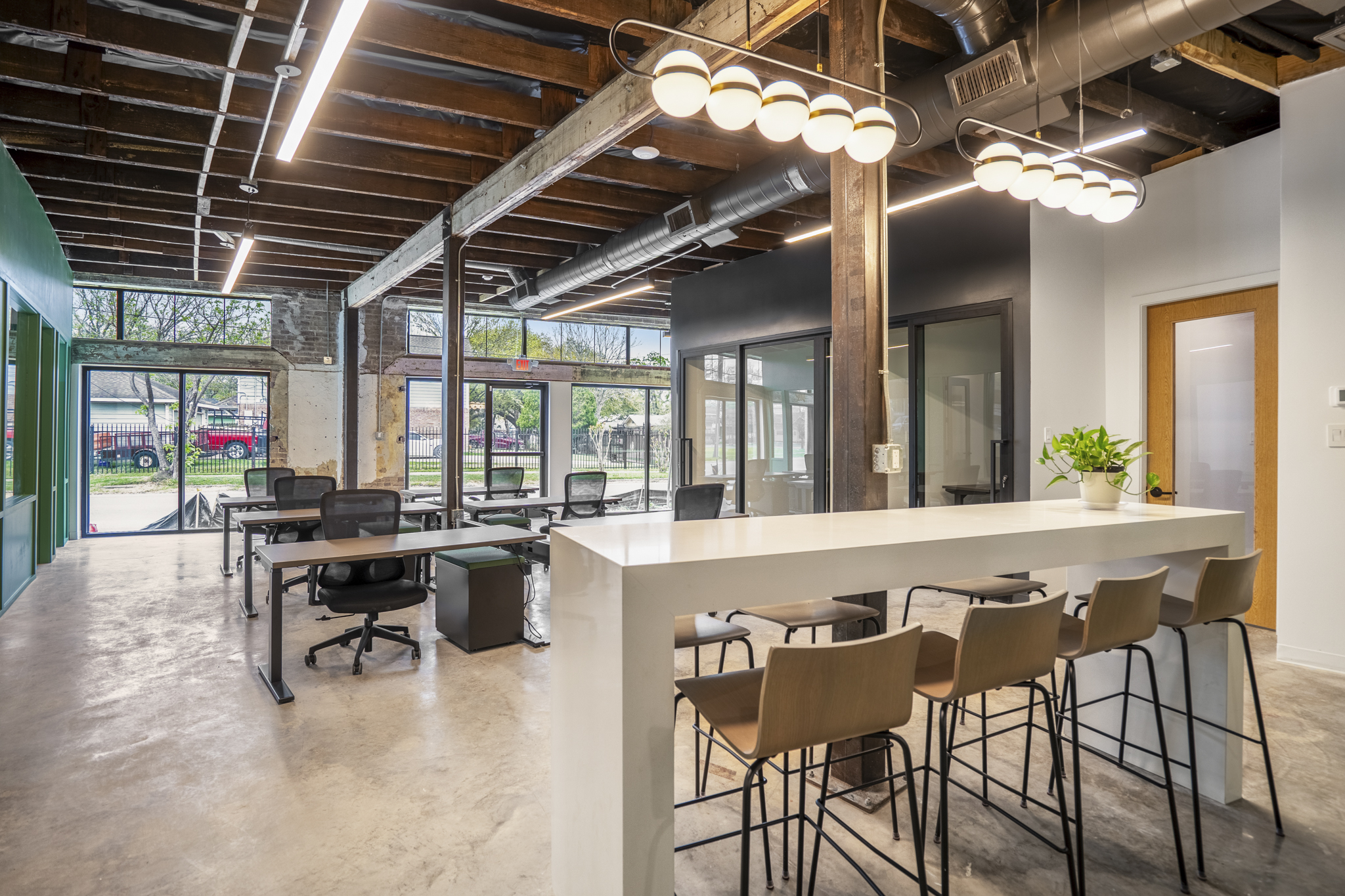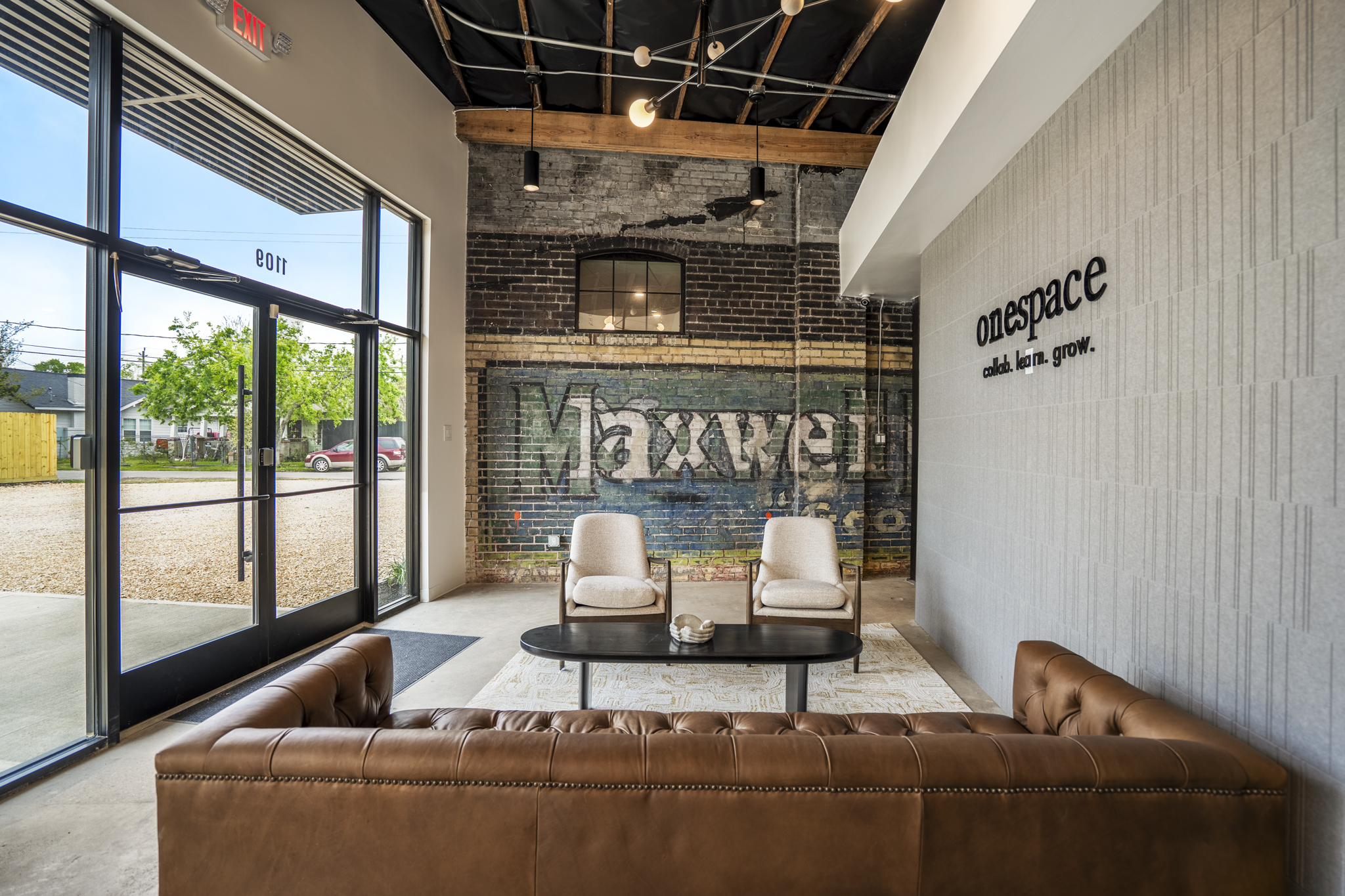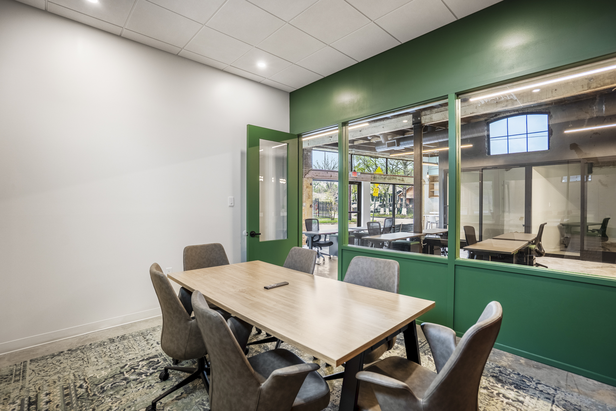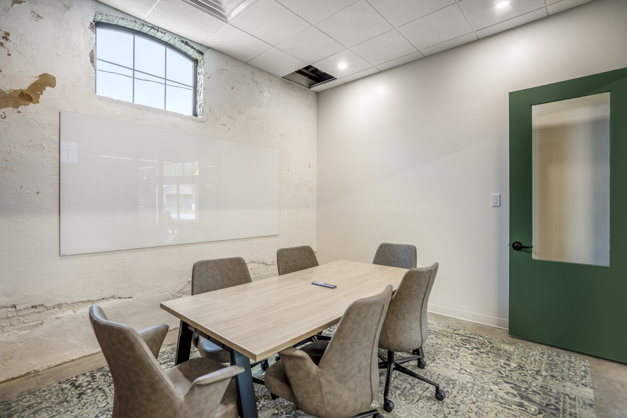 Streaming with natural light and equipped with a 75” Smart TV with streaming capabilities, Collab One is the ideal space to hold a think tank and collaborate with your team.